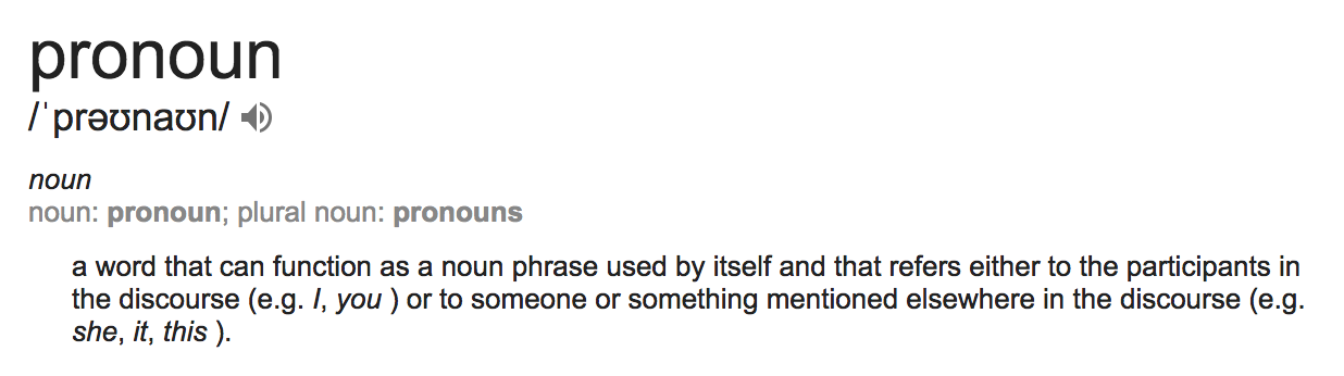 你可能注意到了,I eat apples 里面的“I”并不是名词,而是“代词”。我解释一下。我这里所说的“名词”,是泛指一切物体以及指代物体的名字。所以我叫做“名词”的东西,也包括了代词,比如 I, you, he, she, it。如果你回想一下代词的英文是 pronoun,就会意识到它和名词(noun)之间的关系。
