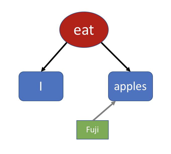 Fuji 是对 apples 的修饰,或者说是它的“属性”,所以我们在树上把它和 apples 连在一起。